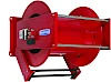 Staal gelakte veer aangedreven gesloten slanghaspel met vaste slanguitloop.